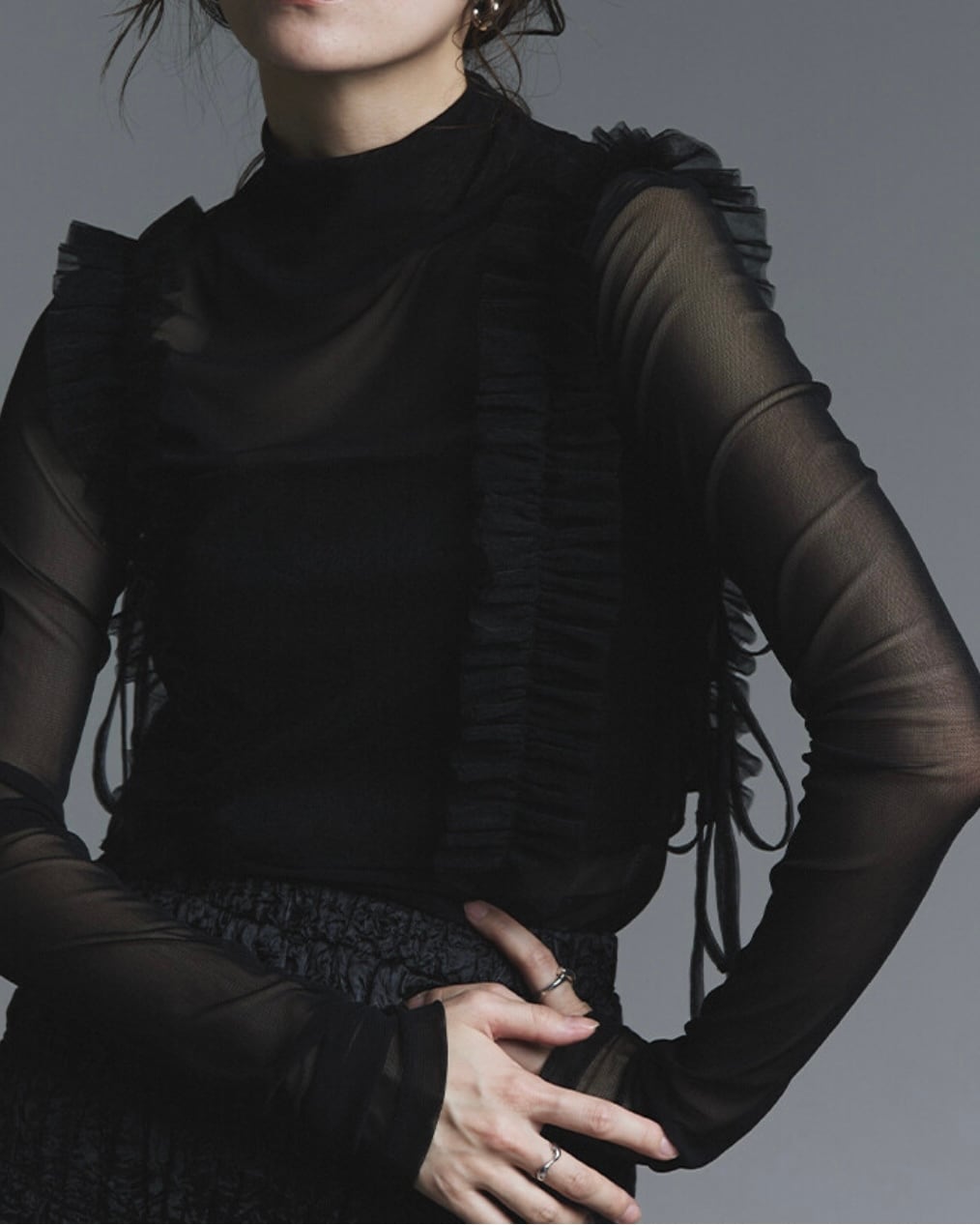 ふんわりとやわらかい光沢感のあるシフォンを使用したビスチェトップス。