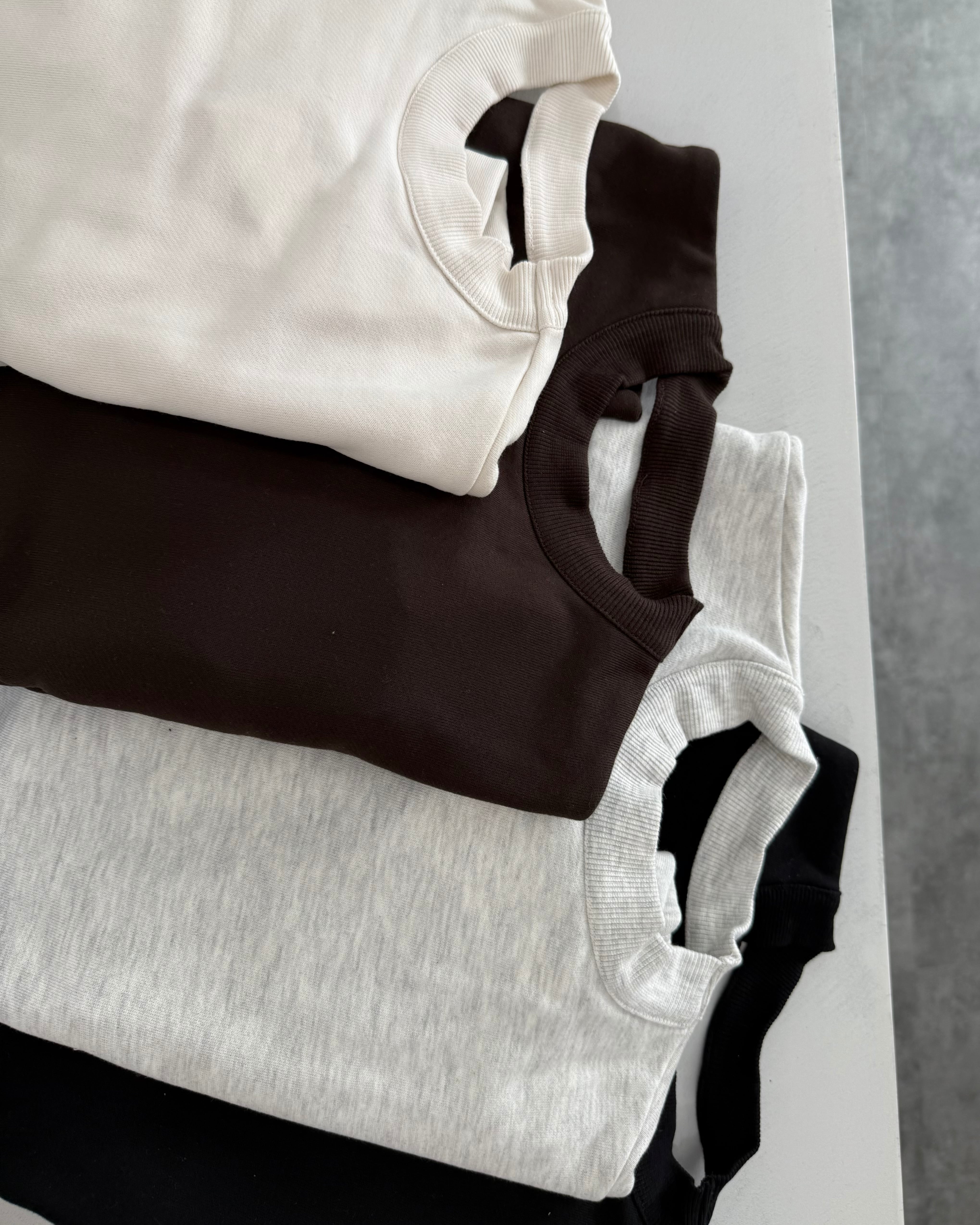 一見シンプルなクルーネックのプルオーバーに見えますが、