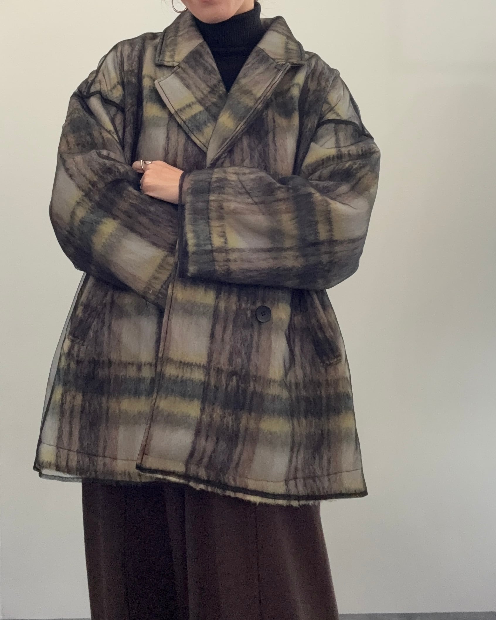 【新作アイテム送料無料】shaggy check tulle layered half coat outerwear