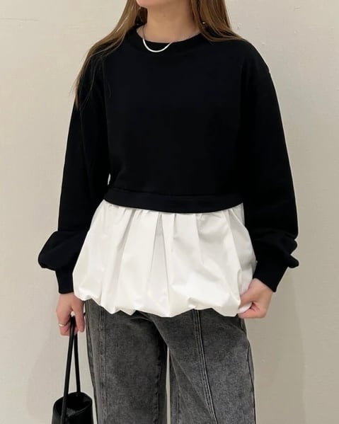 カジュアルな裏毛ときれいめ素材のコントラストで、
