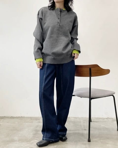前後2WAY着用が可能な配色ヘンリーネックニット