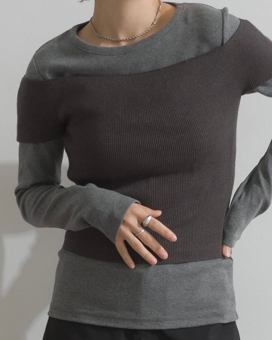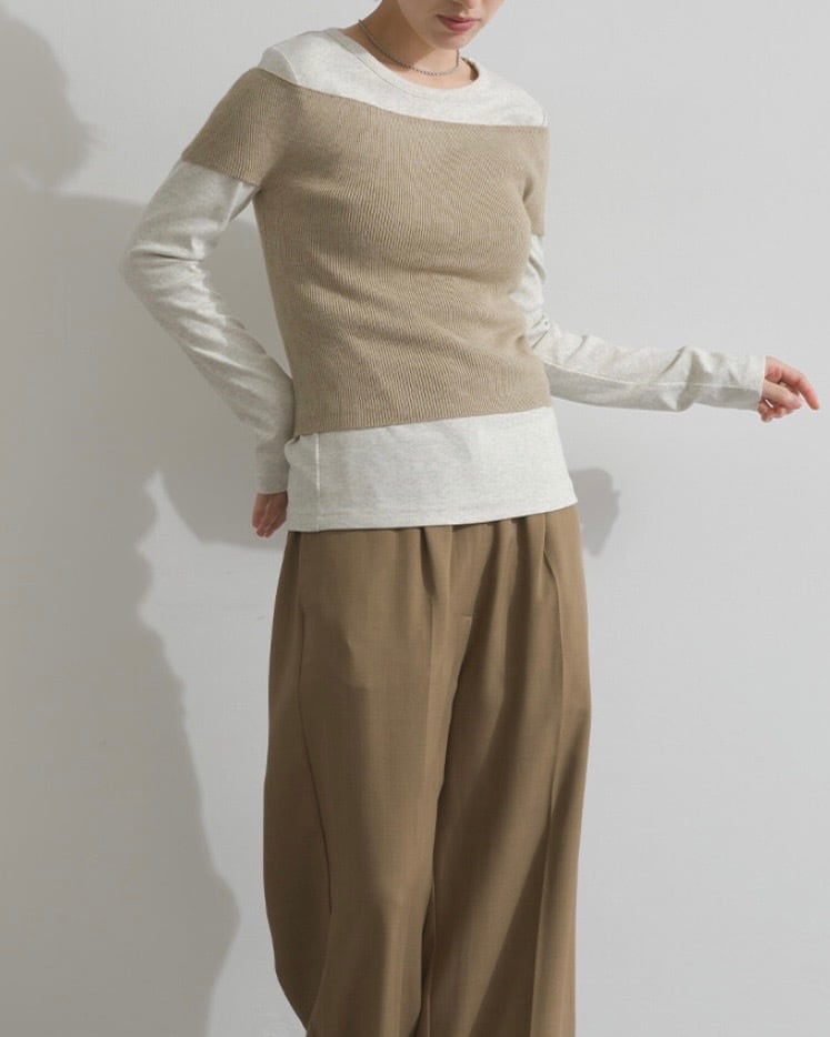 柔らかなリブ編みをベースに、カットソー素材との