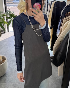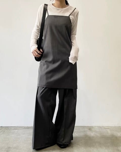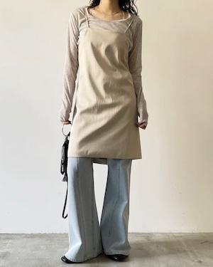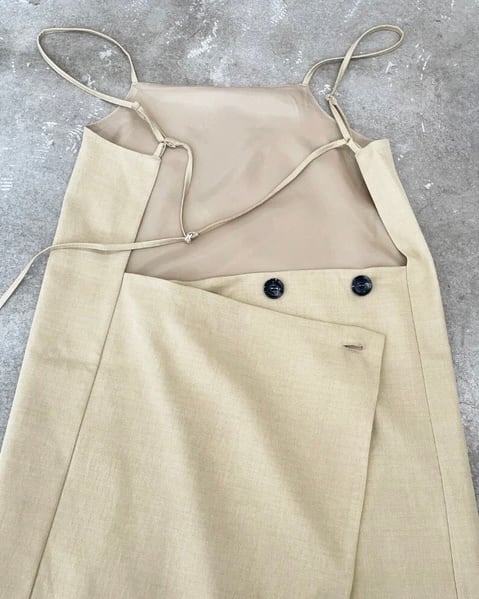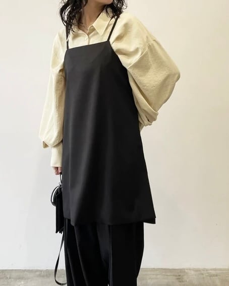 後の釦の位置を変えることで、タイトシルエットのキャミにも