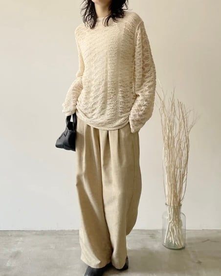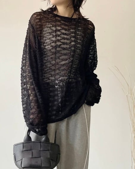 ・ほどよい透け感でインナー次第で着こなしは幅広く、ワンピースやインナーと重ね着しても可能。
