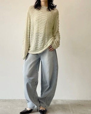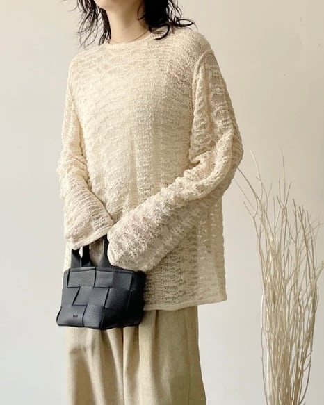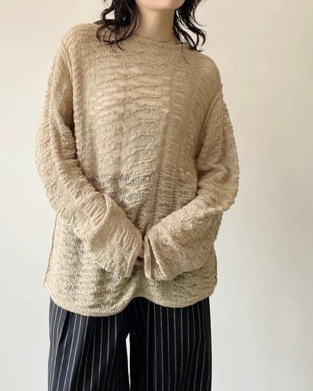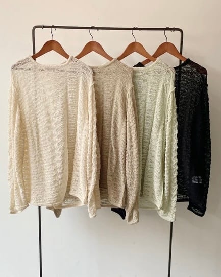 綿混でロングシーズン着用可◎ 透かし編みクルーネックPO