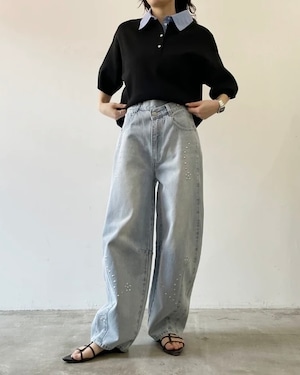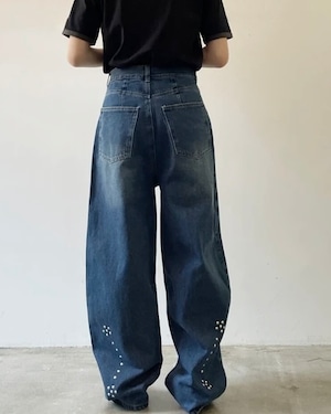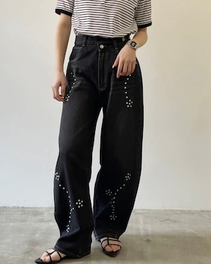 シルバースタッズがポイントになったカーブシルエットデニム。