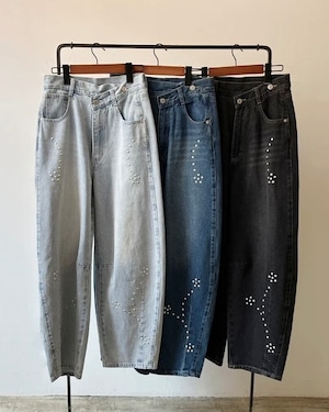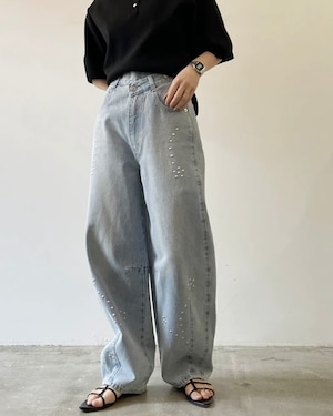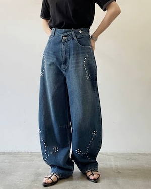 【新作アイテム送料無料】denim studded asymmetrical curve pants