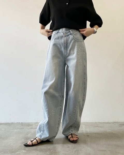 スタッズが可愛いトレンドライクなカーブシルエットデニムが登場!