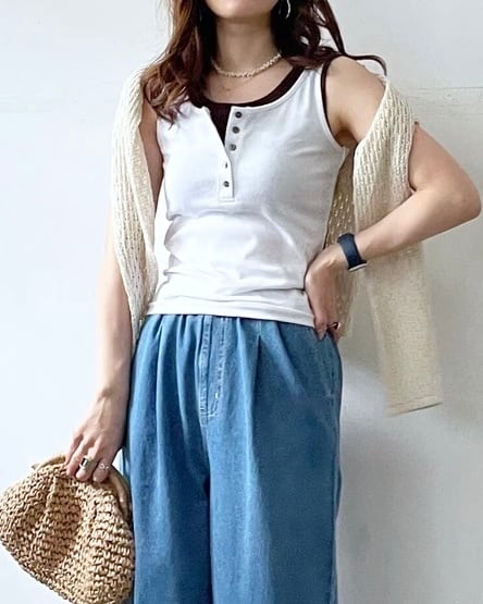配色レイヤードで差がつくカップ付きタンクが登場