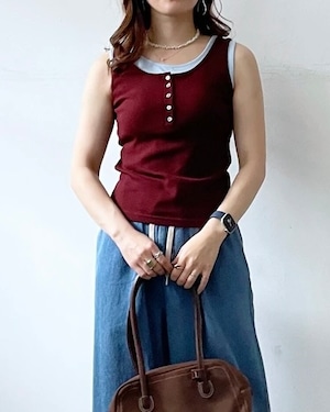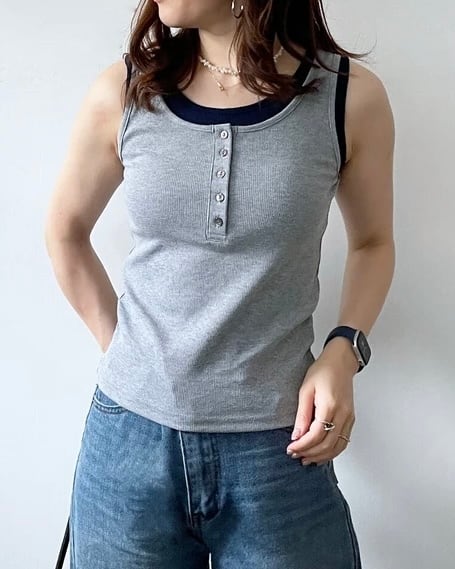 配色デザインがポイントのレイヤード風タンクトップ。