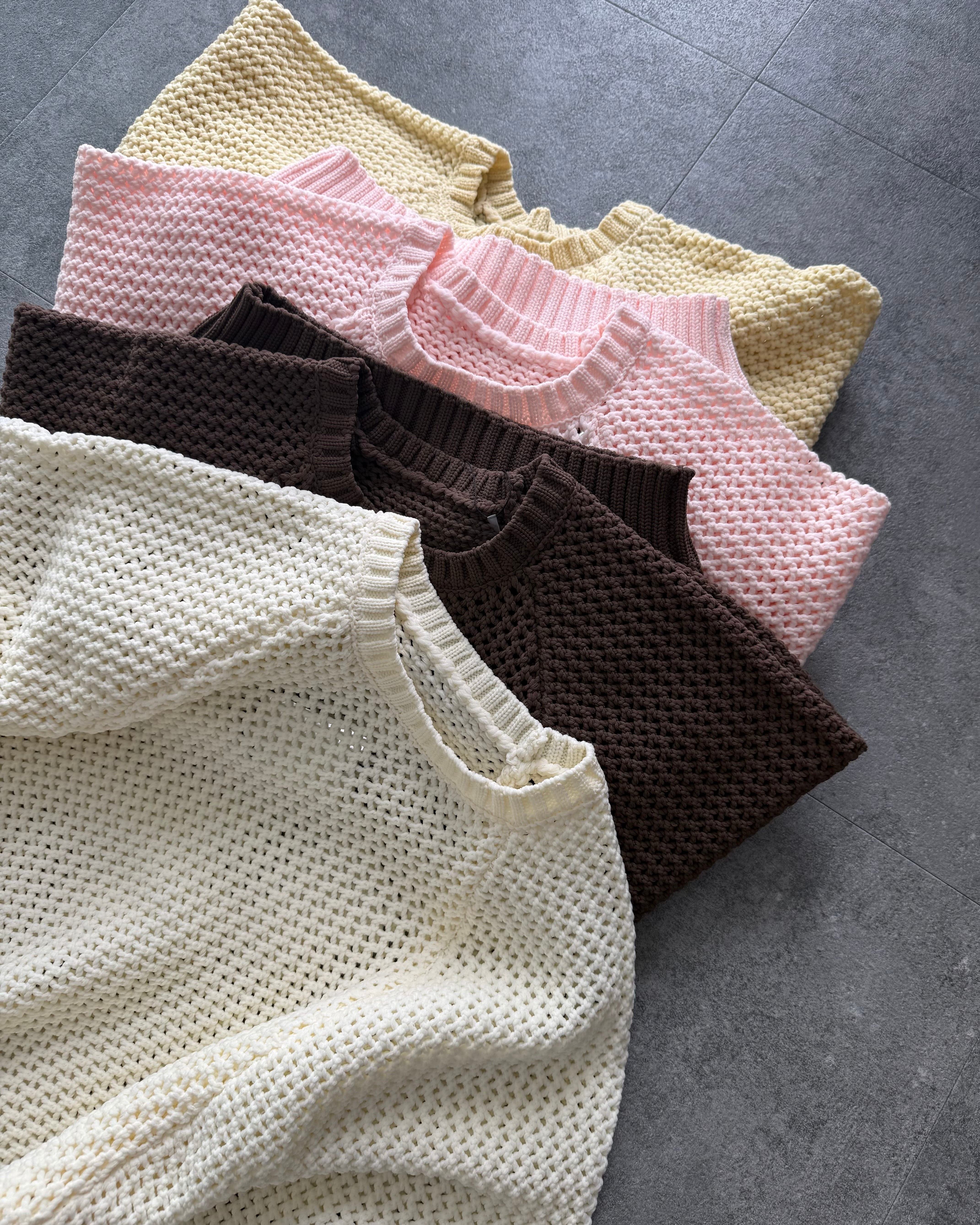 透かし編みのメッシュ素材が、軽やかな印象を演出。