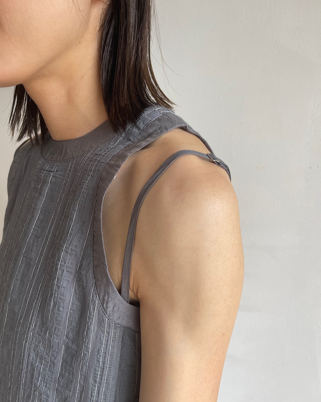 女性らしさを出してくれます。袖ぐりが少し深いので、